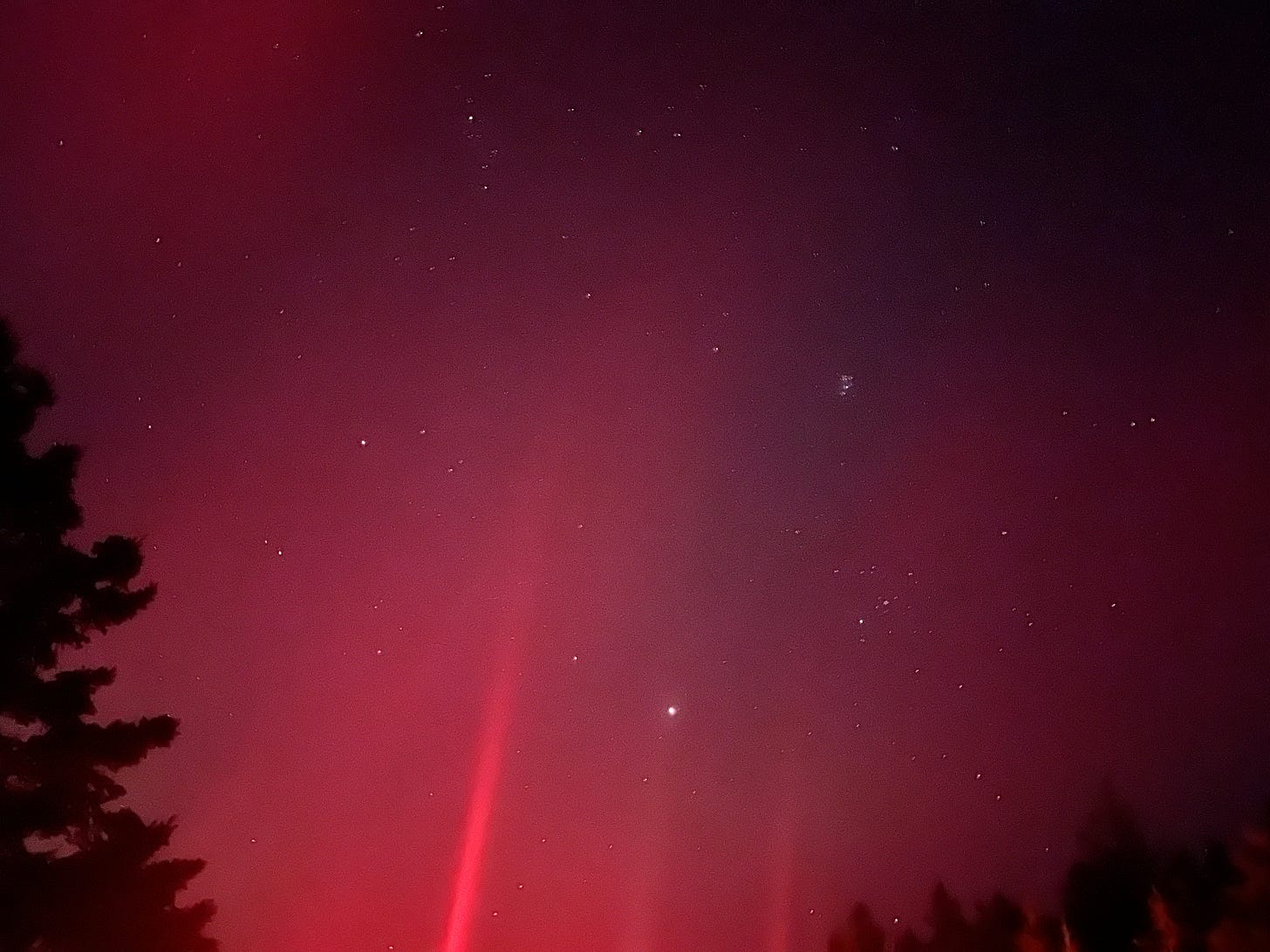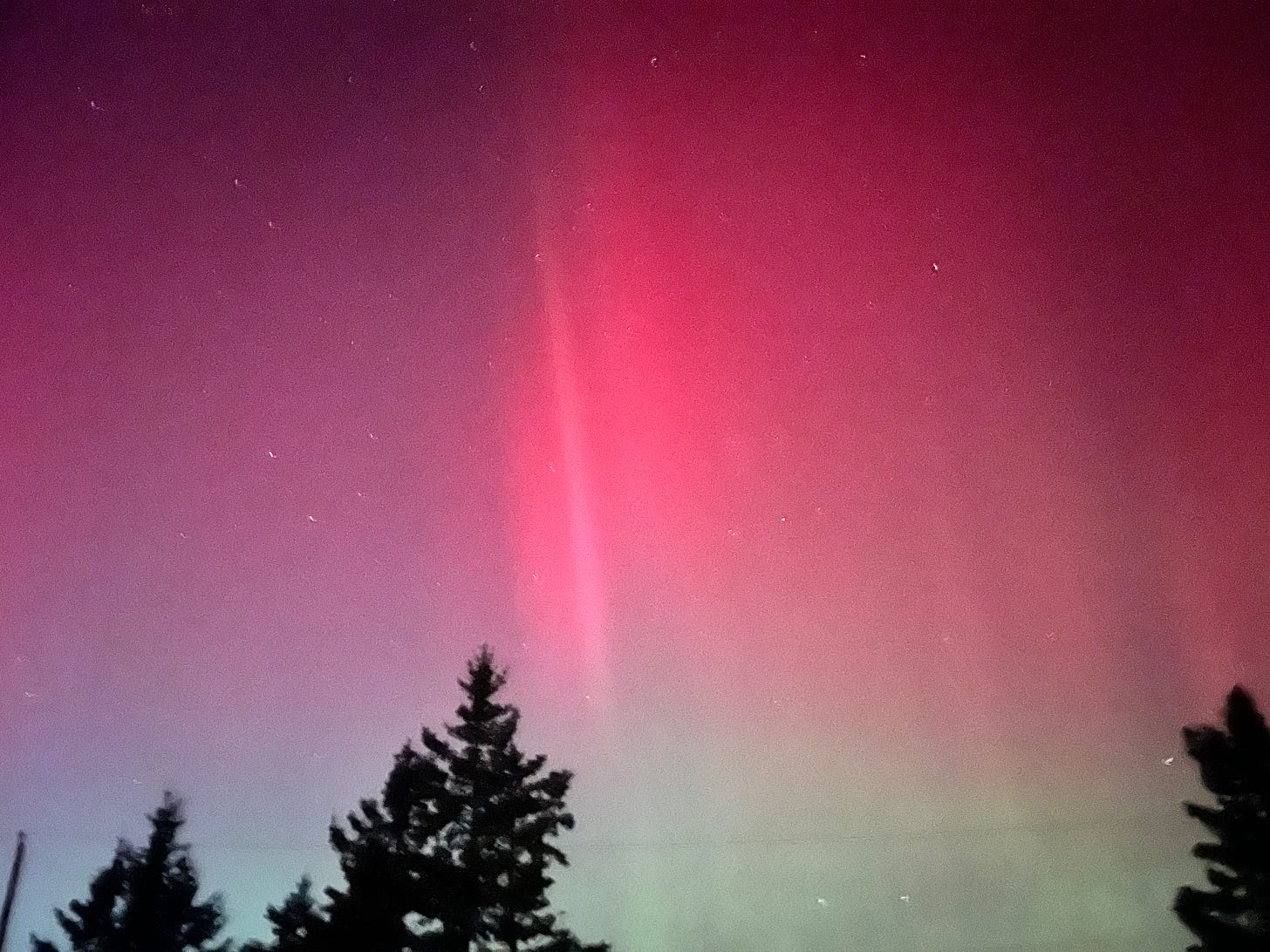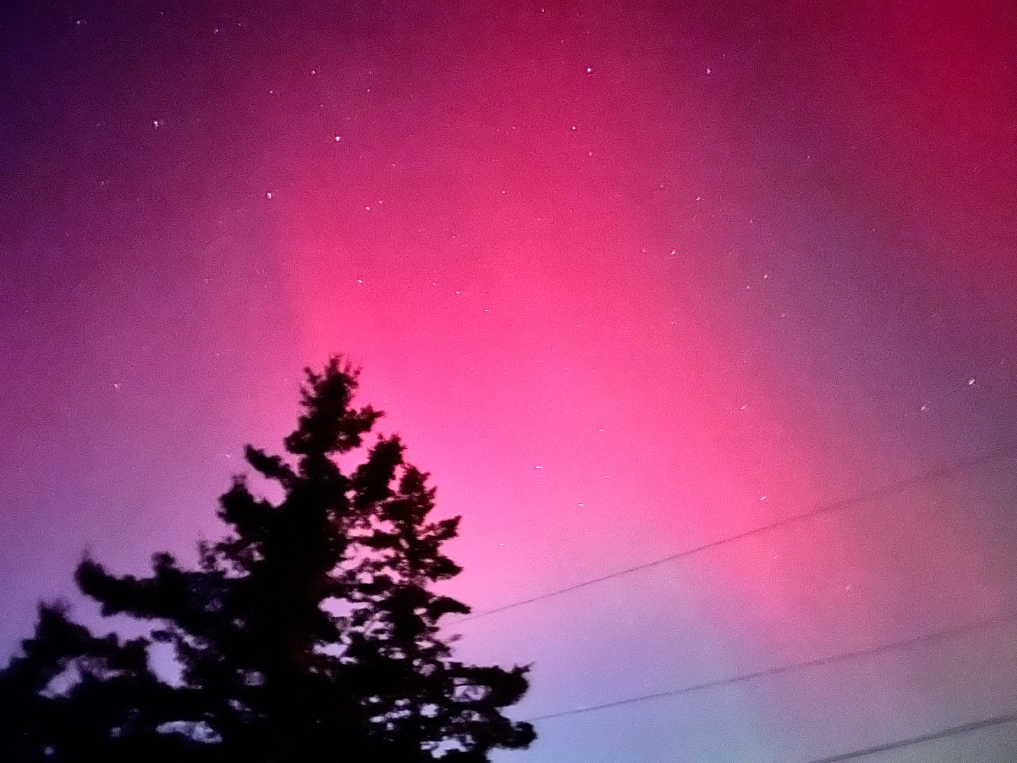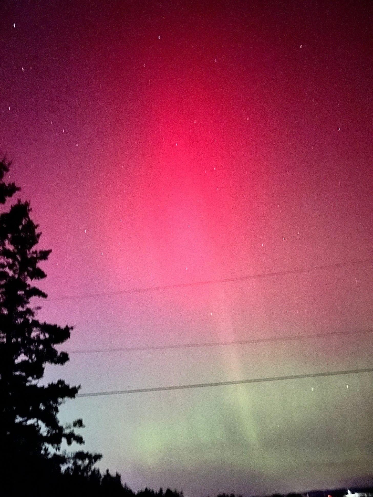 In southern New England, we've also missed countless celestial events due to clouds and rain, but last night's Northern Lights were spectacular: pink to red shimmering above with a bit of blue and green off to the side. More possible tonight.